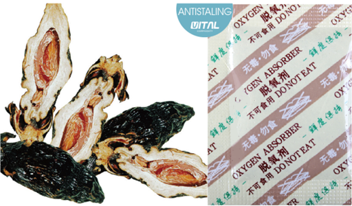 1.脫氧 通過持續吸收檳榔包裝內的氧氣,使包裝袋內的氧氣濃度始終維持在0.1%以下的相對無氧狀態,有效的抑制霉菌和好氧性細菌的生長,延長產品的貨架期